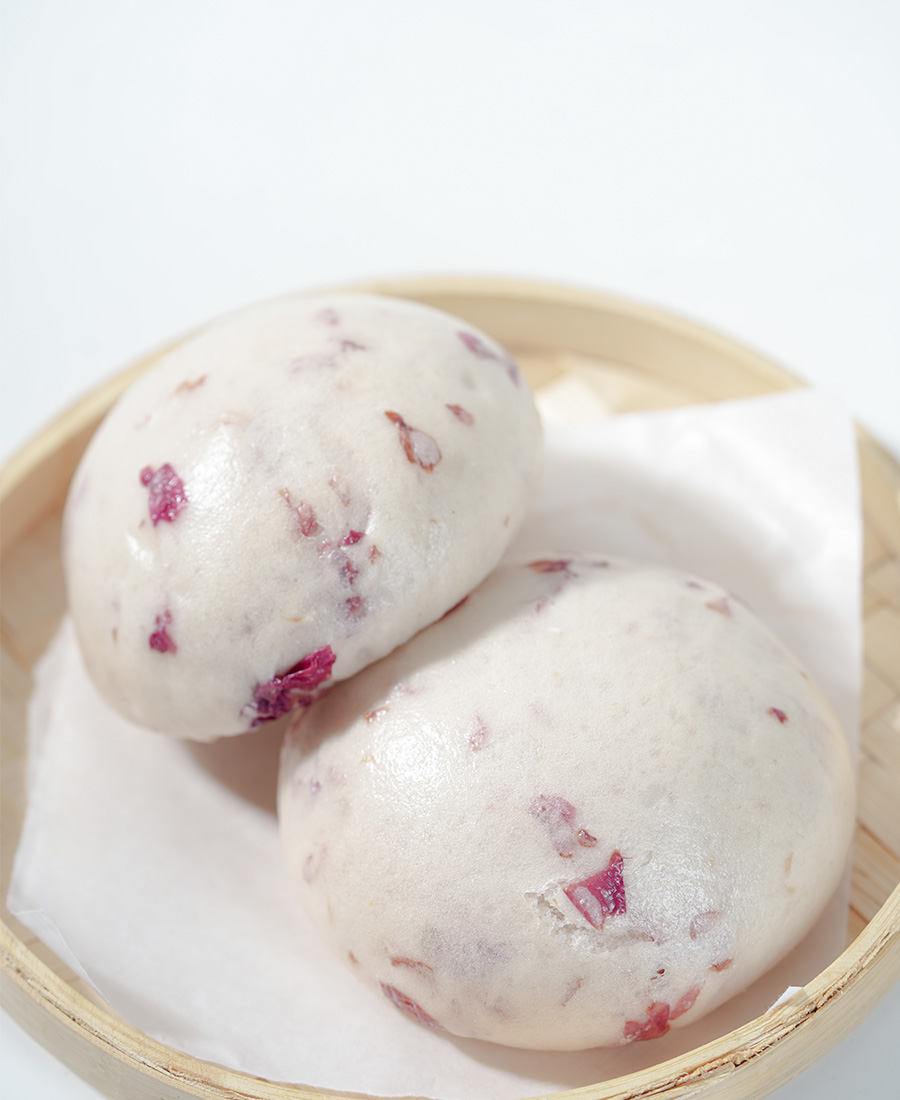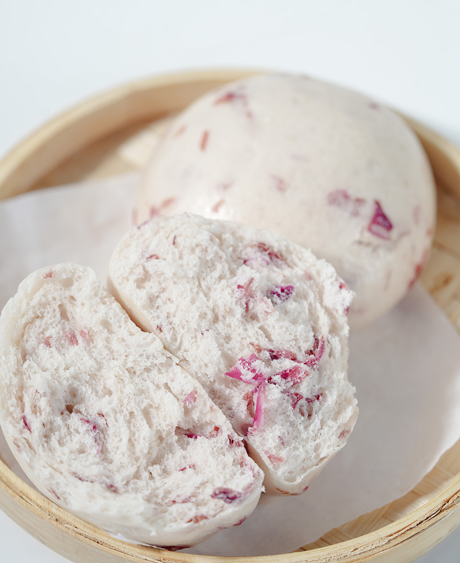 1.和面。将白糖完全融水,加入其他材料(玫瑰花不加)和面,搅拌至面团光滑即可。面团温度28-30℃。